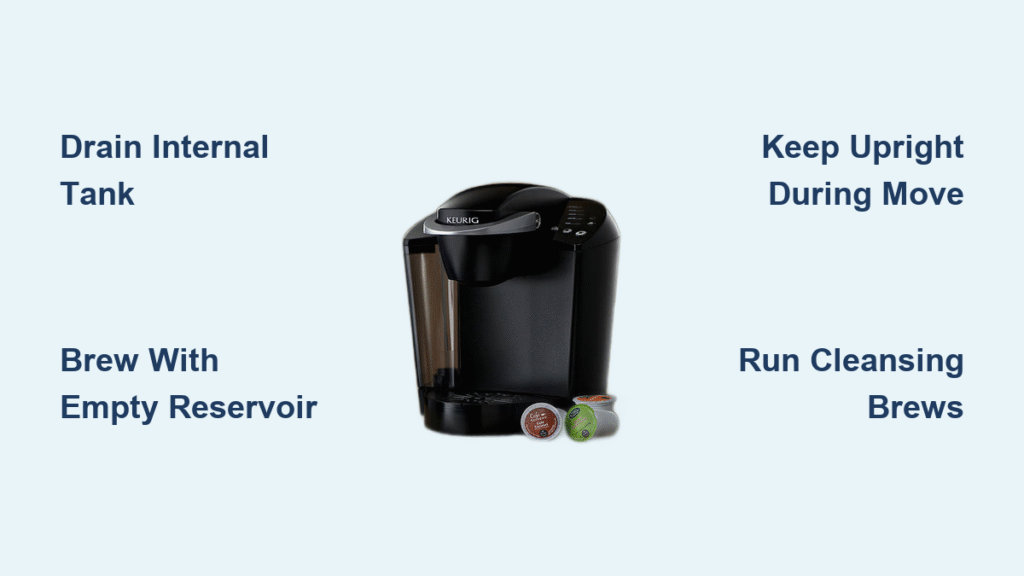 Your Keurig is now move-ready—no leaks, no mold, no surprises. By following these model-specific how to empty a Keurig for moving steps, you’ve protected your machine from transit hazards and ensured it’ll brew flawlessly on day one in your new home. Remember: the real cost isn’t the 10 minutes you invest now—it’s the ruined coffee maker waiting in your unpacked boxes if you skip this critical step. Run those cleansing brews after setup, and savor that first perfect cup in your new kitchen.