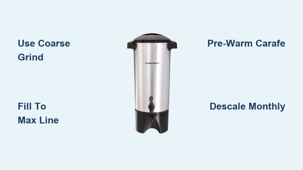 Your grind size and measurement directly determine whether coffee tastes bitter, weak, or perfectly balanced. Hamilton Beach specifically engineered the 45-cup urn for coarse-to-medium grinds—here’s how to get it right every time.