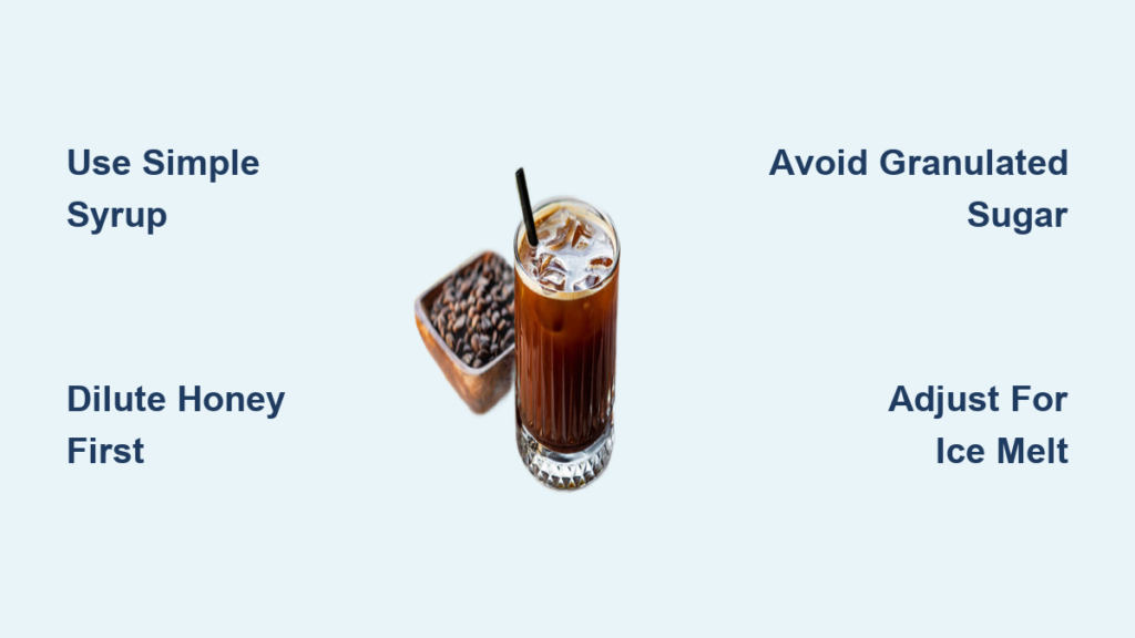 Honey requires special handling to avoid clumping. Because honey is viscous and doesn’t dissolve easily in cold liquids, the key is diluting it first. Mix equal parts honey and warm water (not hot—just warm enough to make it pourable) in a jar, shake vigorously, and you’ll have a honey syrup that blends perfectly into cold brew. This method preserves honey’s floral notes while ensuring even distribution throughout your cup.