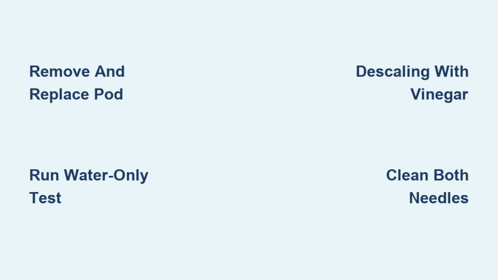 Insert a brand-new, factory-sealed pod, close the handle until it clicks, then press brew. If the red light stops flashing and coffee flows, you’ve just fixed an over-packed or reused pod issue. If blinking continues, proceed immediately to the water-only test—this eliminates pod variables.