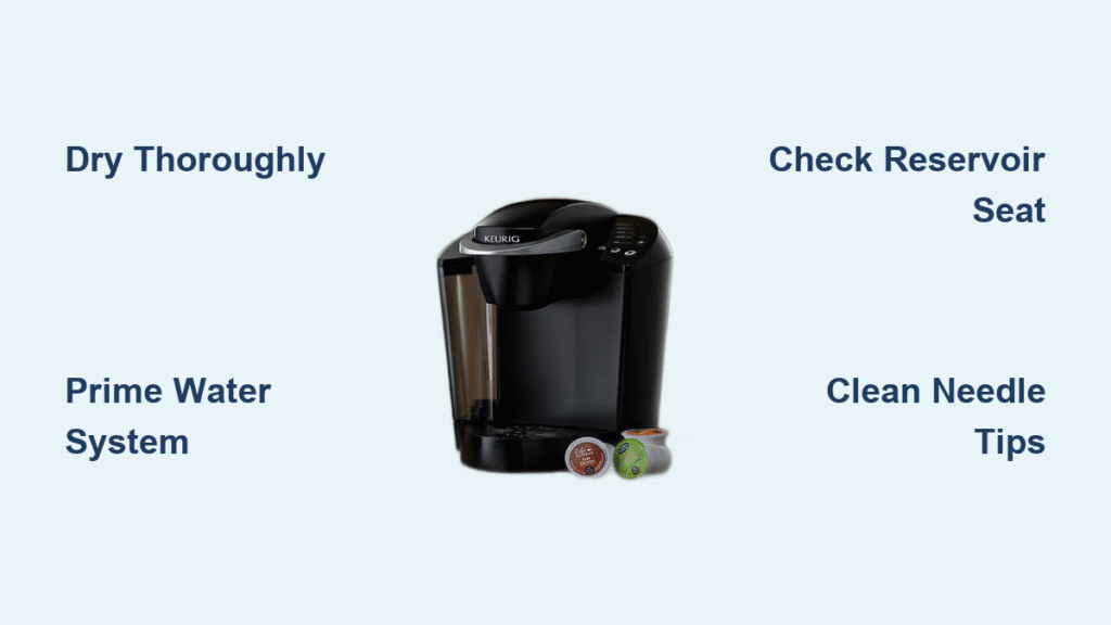 When your Keurig starts brewing then abruptly stops halfway through, misaligned components have triggered the machine’s safety sensors. This commonly happens when the K-cup holder or water reservoir isn’t properly seated after cleaning. Follow this precise realignment sequence:
