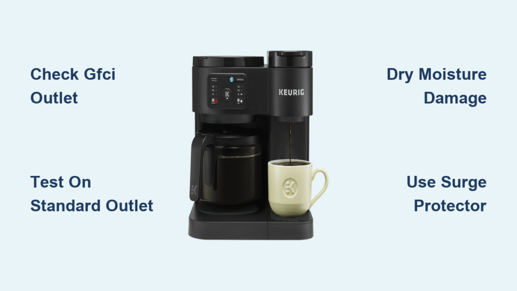 Plug a lamp or phone charger into the same outlet. If they fail too, the problem is your home wiring—not the Keurig. Never bypass GFCI outlets within 6 feet of sinks (a code violation); instead, relocate the brewer to a compliant standard outlet elsewhere.