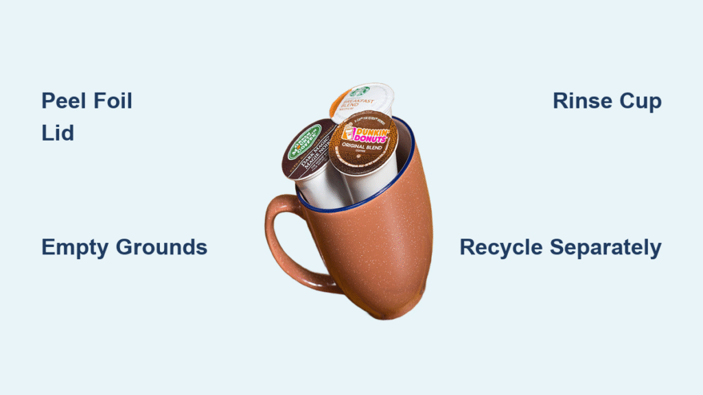 Critical red flags: If they mention “minimum size requirements” or “no small plastics,” K-Cups won’t make it through their system. In these cases, skip municipal recycling entirely—your pods will just contaminate the stream. For those with confirmed acceptance, follow this prep protocol: Peel foil completely (starting at the brew puncture hole), empty coffee grounds into compost, rinse the plastic cup briefly, and recycle the cup separately from the foil lid. Never nest multiple cups—they’ll trap moisture and get rejected.