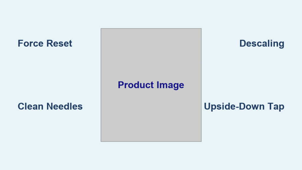 What Success Looks Like: You’ll typically hear small particles moving inside or see water drip out during the process. After righting your brewer, run 2-3 water-only cycles to flush any dislodged debris. This technique clears sediment from hard-to-reach internal valves that standard descaling misses.