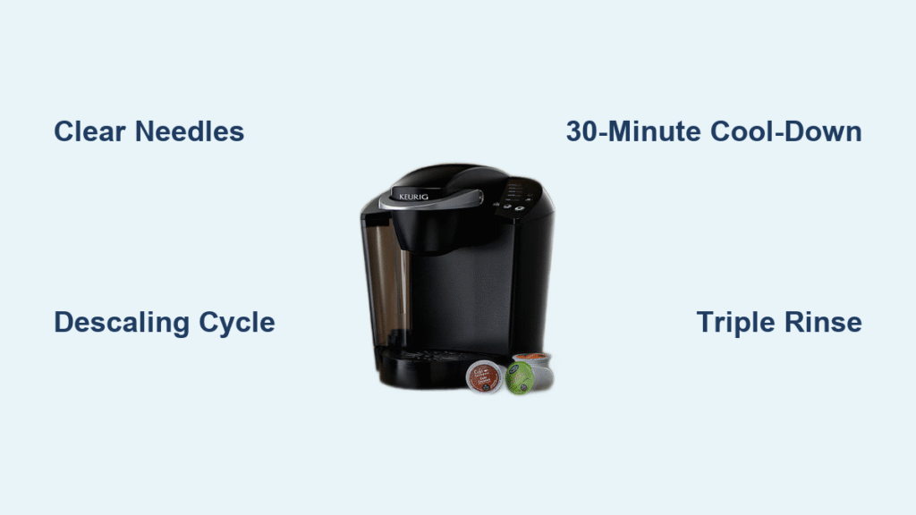 Blocked needles force your Keurig to overheat by restricting water flow. Here’s the precision cleaning method: