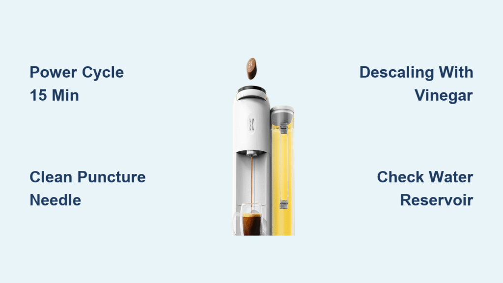 Every Sunday, clean the puncture needle before making coffee. Use the orange tool dry—no liquids needed. Insert, rotate 2x, remove. Takes 90 seconds but prevents 70% of blockage-induced floods. Pair this with a reservoir wipe-down using vinegar spray to dissolve early mineral buildup. Hard water users? Double this to twice weekly.
