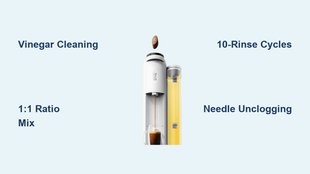 Mineral deposits form when heated water evaporates, leaving behind limescale that narrows water channels by up to 40% over time. Coffee oils simultaneously coat internal components, creating rancid flavors in every cup. Standard white vinegar’s 5% acetic acid dissolves both threats through a chemical reaction that breaks calcium carbonate bonds without harming food-safe plastics or rubber seals.